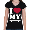 1 kép PRINTFASHION I love my SK8 - Női V-nyakú póló - Fekete