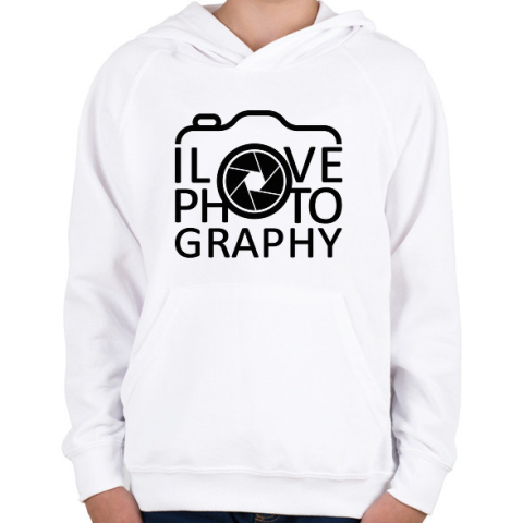 1 kép PRINTFASHION I love photography - Gyerek kapucnis pulóver - Fehér