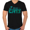 1 kép PRINTFASHION i love the cats-blue - Férfi V-nyakú póló - Fekete