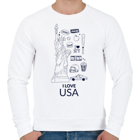 1 kép PRINTFASHION I LOVE USA - Férfi pulóver - Fehér