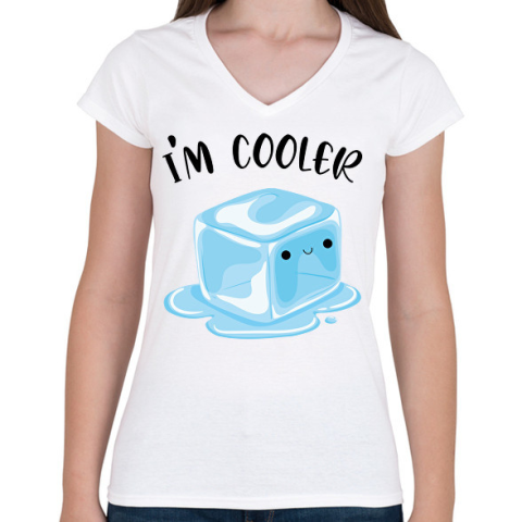 1 kép PRINTFASHION I'm cooler - Női V-nyakú póló - Fehér