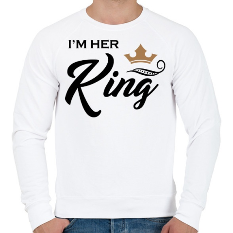 1 kép PRINTFASHION I'M HER KING - Férfi pulóver - Fehér
