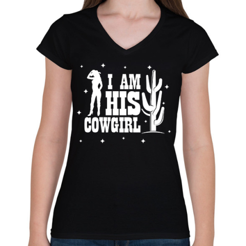 1 kép PRINTFASHION I'm his cowgirl - Női V-nyakú póló - Fekete