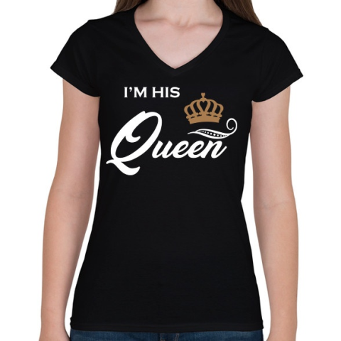 1 kép PRINTFASHION I'M HIS QUEEN - Női V-nyakú póló - Fekete