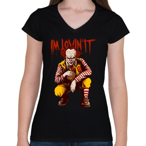 1 kép PRINTFASHION I'M LOVIN IT - Női V-nyakú póló - Fekete