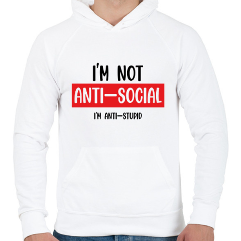 1 kép PRINTFASHION I'm not anti-social (black) - Férfi kapucnis pulóver - Fehér