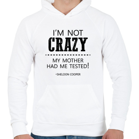 1 kép PRINTFASHION I'm not crazy - Sheldon Cooper - Férfi kapucnis pulóver - Fehér
