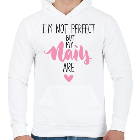 1 kép PRINTFASHION I'm not perfect but my nails are - Férfi kapucnis pulóver - Fehér
