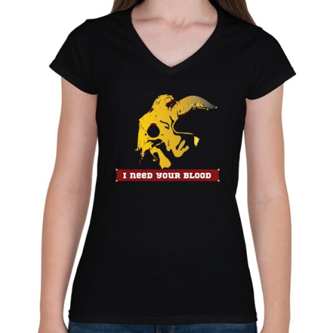 1 kép PRINTFASHION I need your blood - Női V-nyakú póló - Fekete