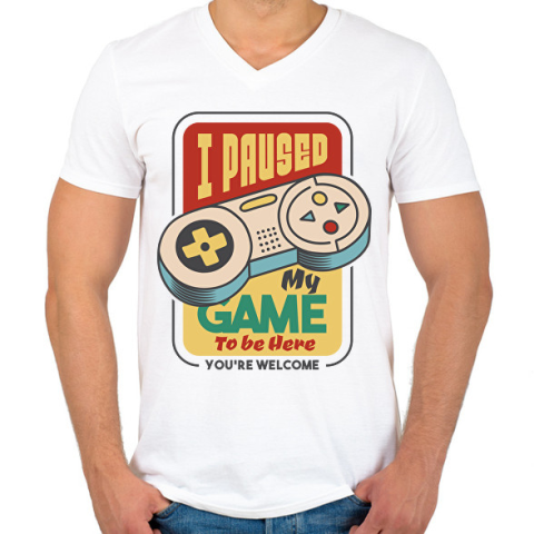1 kép PRINTFASHION I paused my game to be here - Férfi V-nyakú póló - Fehér