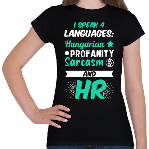 1 kép PRINTFASHION I speak 4 languages - Női póló - Fekete