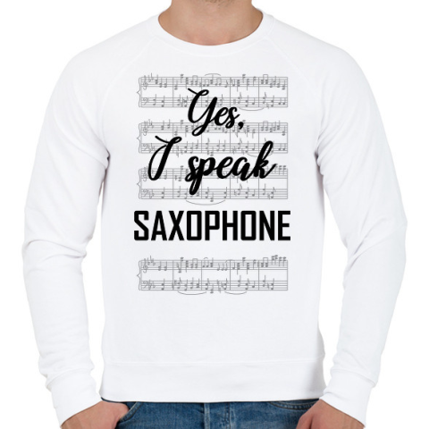 1 kép PRINTFASHION I speak saxophone - Férfi pulóver - Fehér