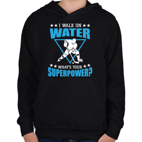 1 kép PRINTFASHION I walk on water - Gyerek kapucnis pulóver - Fekete