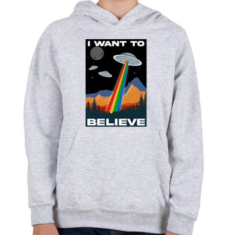 1 kép PRINTFASHION I want to believe - Gyerek kapucnis pulóver - Sport szürke