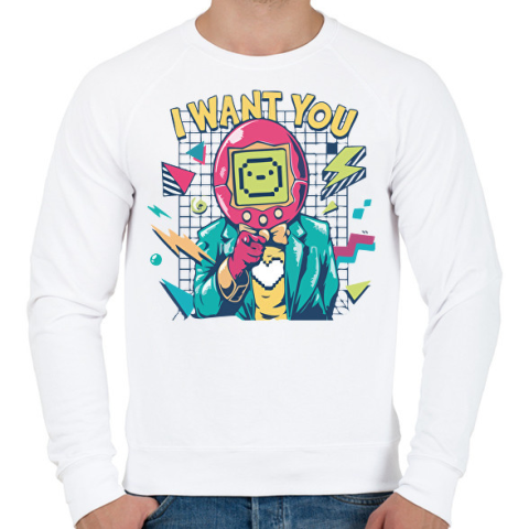 1 kép PRINTFASHION I want you 80-as évek - Férfi pulóver - Fehér