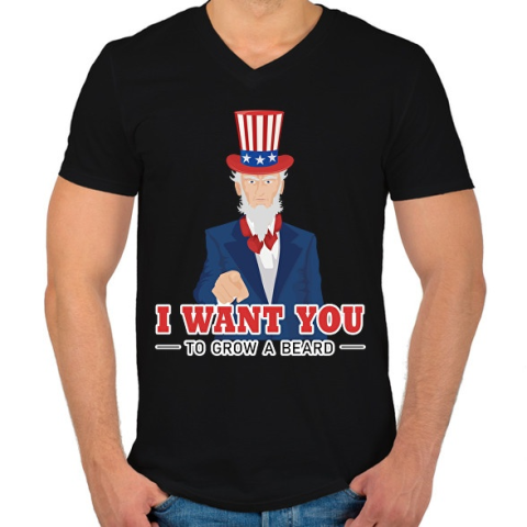 1 kép PRINTFASHION I want you to grow a beard - Férfi V-nyakú póló - Fekete