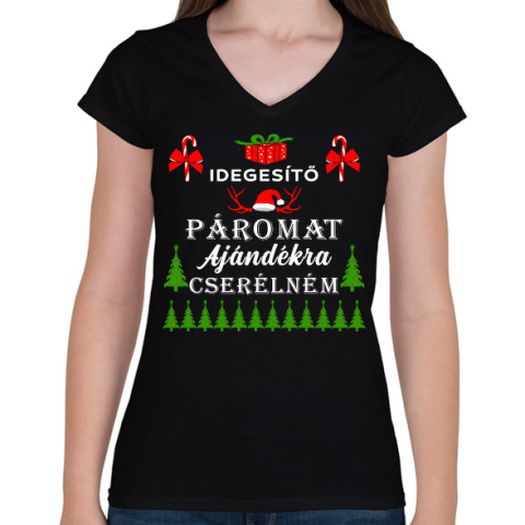 1 kép PRINTFASHION Idegesítő páromat ajándékra cserélném - Női V-nyakú póló - Fekete