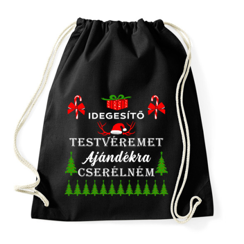 1 kép PRINTFASHION Idegesítő testvéremet ajándékra cserélném - Sportzsák, Tornazsák - Fekete