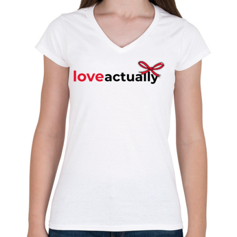 1 kép PRINTFASHION Igazából szerelem - Női V-nyakú póló - Fehér