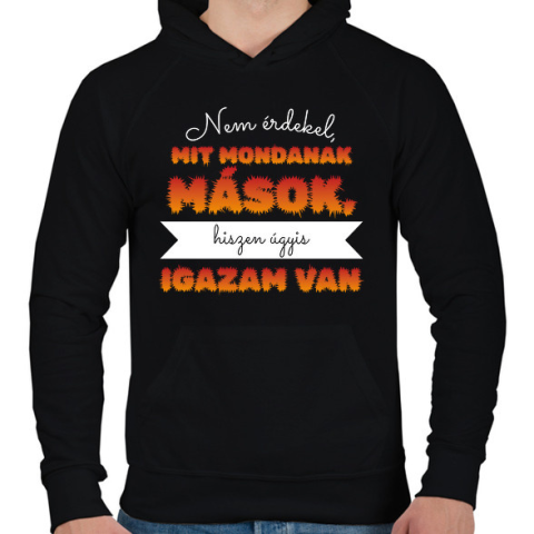 1 kép PRINTFASHION Igazam van - Férfi kapucnis pulóver - Fekete