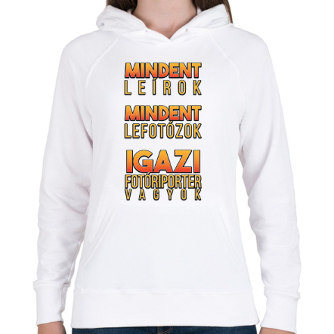 1 kép PRINTFASHION Igazi fotóriporter - Női kapucnis pulóver - Fehér