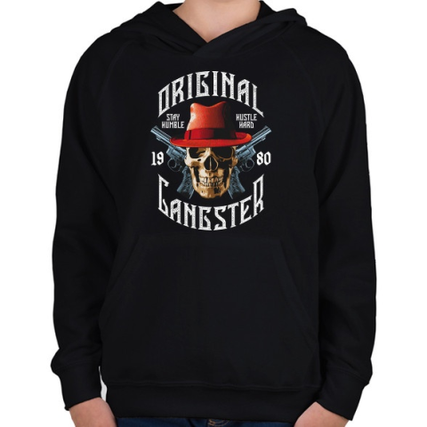 1 kép PRINTFASHION Igazi gengszter 1980 - Gyerek kapucnis pulóver - Fekete
