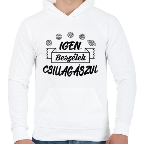 1 kép PRINTFASHION Igen, beszélek csillagászul - Férfi kapucnis pulóver - Fehér