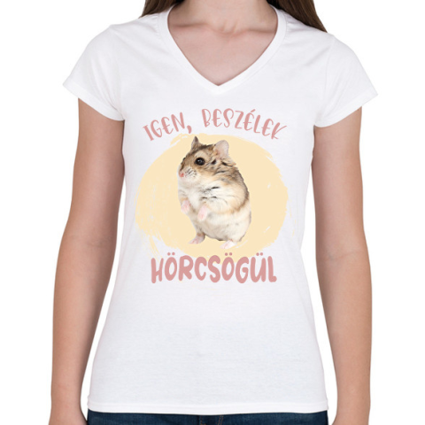 1 kép PRINTFASHION Igen, beszélek hörcsögül - Női V-nyakú póló - Fehér