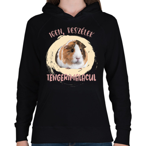1 kép PRINTFASHION Igen, beszélek tengerimalacul - Női kapucnis pulóver - Fekete