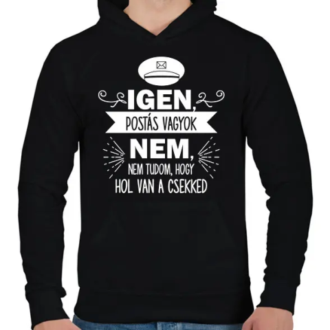 1 kép PRINTFASHION Igen, postás vagyok - Férfi kapucnis pulóver - Fekete