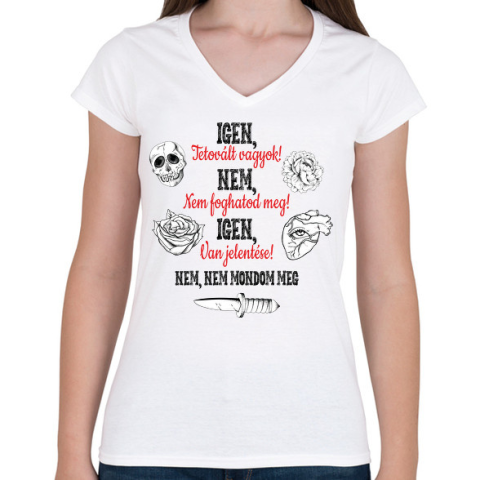 1 kép PRINTFASHION Igen, tetovált vagyok! - Női V-nyakú póló - Fehér