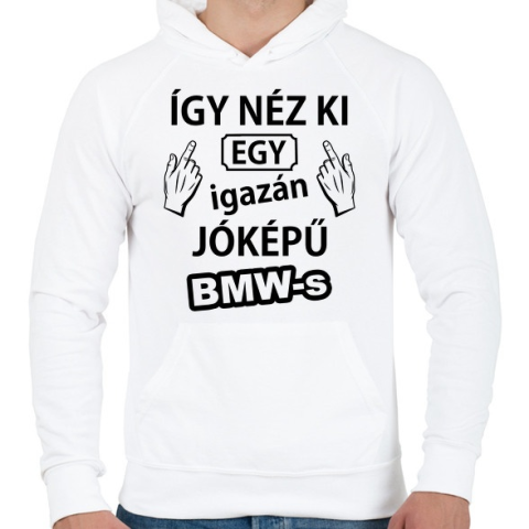 1 kép PRINTFASHION Így néz ki egy igazán jóképű BMW-s - Férfi kapucnis pulóver - Fehér