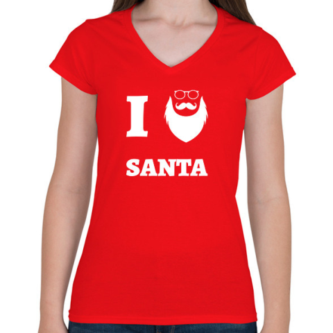 1 kép PRINTFASHION ilovesanta - Női V-nyakú póló - Piros
