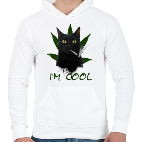 1 kép PRINTFASHION IM COOL - Férfi kapucnis pulóver - Fehér