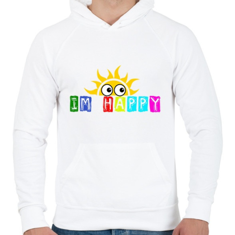 1 kép PRINTFASHION im happy - Férfi kapucnis pulóver - Fehér
