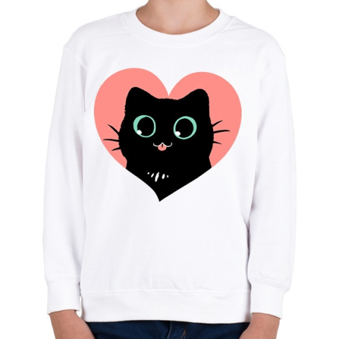1 kép PRINTFASHION Imádom a fekete cicákat - Gyerek pulóver - Fehér