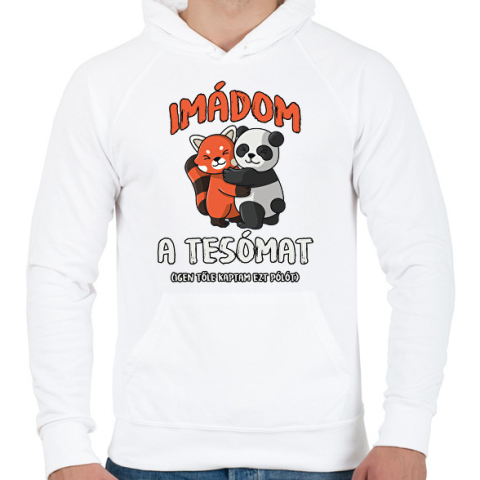 1 kép PRINTFASHION Imádom a tesómat... - Férfi kapucnis pulóver - Fehér