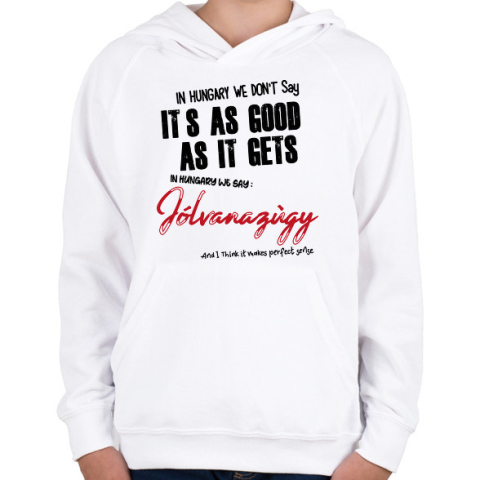 1 kép PRINTFASHION In Hungary we don't say - Gyerek kapucnis pulóver - Fehér