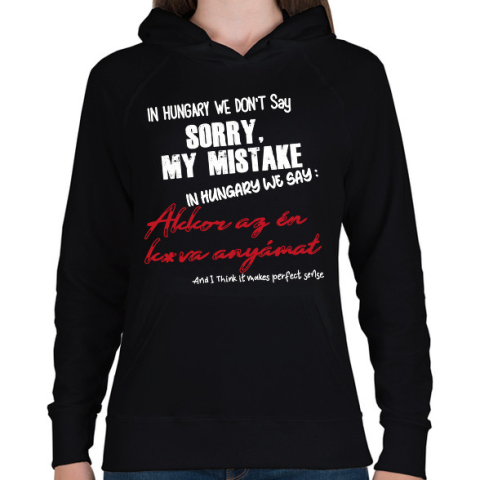 1 kép PRINTFASHION In Hungary we don't say - Női kapucnis pulóver - Fekete