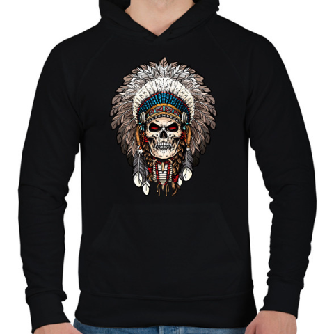 1 kép PRINTFASHION Indián - Férfi kapucnis pulóver - Fekete