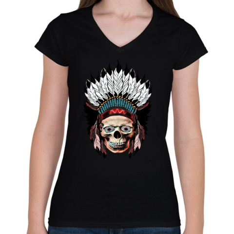 1 kép PRINTFASHION indian skull - Női V-nyakú póló - Fekete