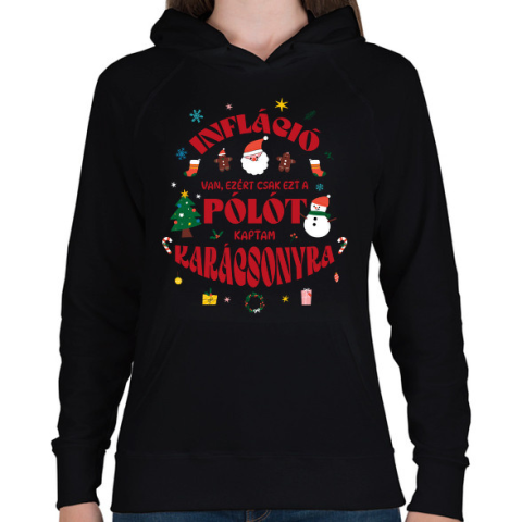 1 kép PRINTFASHION Infláció és karácsony - Női kapucnis pulóver - Fekete