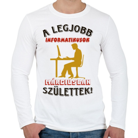 1 kép PRINTFASHION Informatikus férfi szülinapja március - Férfi hosszú ujjú póló - Fehér