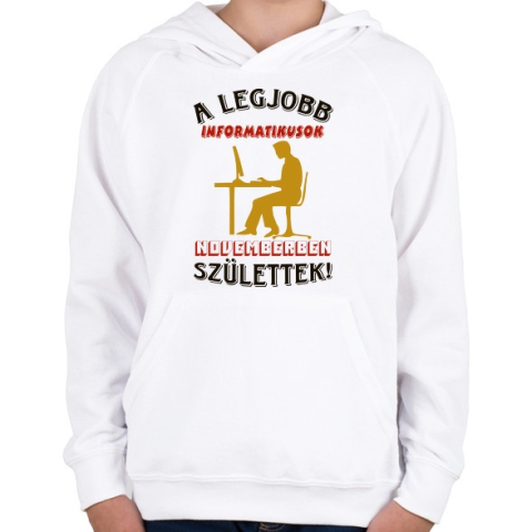 1 kép PRINTFASHION Informatikus férfi szülinapja november - Gyerek kapucnis pulóver - Fehér