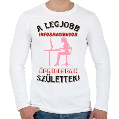 1 kép PRINTFASHION Informatikus nő szülinapja április - Férfi hosszú ujjú póló - Fehér