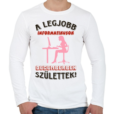 1 kép PRINTFASHION Informatikus nő szülinapja december - Férfi hosszú ujjú póló - Fehér