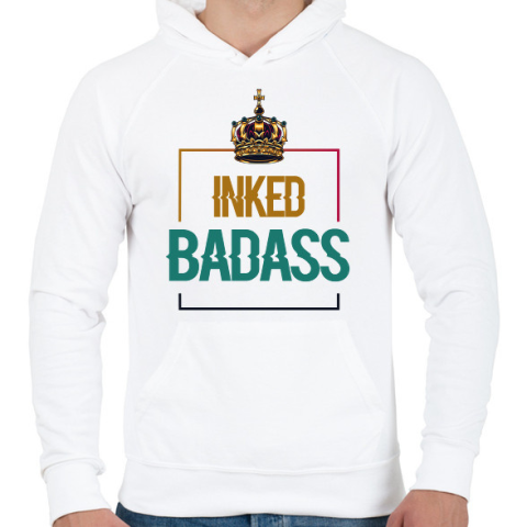 1 kép PRINTFASHION Inked Badass - Férfi kapucnis pulóver - Fehér