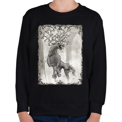 1 kép PRINTFASHION Inktober 2025 - A szörnyszarvas - Gyerek pulóver - Fekete