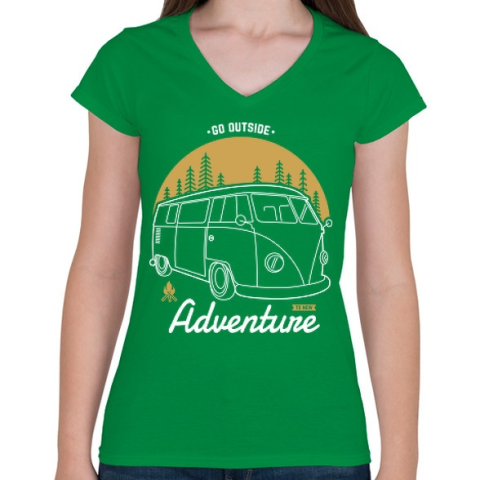 1 kép PRINTFASHION Irány kalandozni - Női V-nyakú póló - Zöld