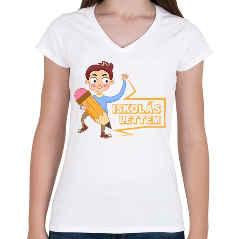1 kép PRINTFASHION Iskolás lettem - Női V-nyakú póló - Fehér